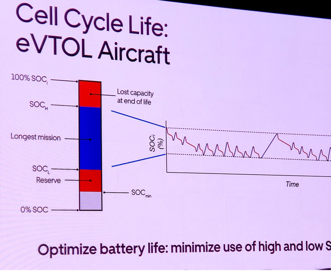 The middle of the battery pack — the part between the percentage expected to degrade and the part that will be regularly kept in reserve — is the sweet spot. That portion of battery needs to provide enough range for an aircraft to perform the longest mission it might be called on to perform.